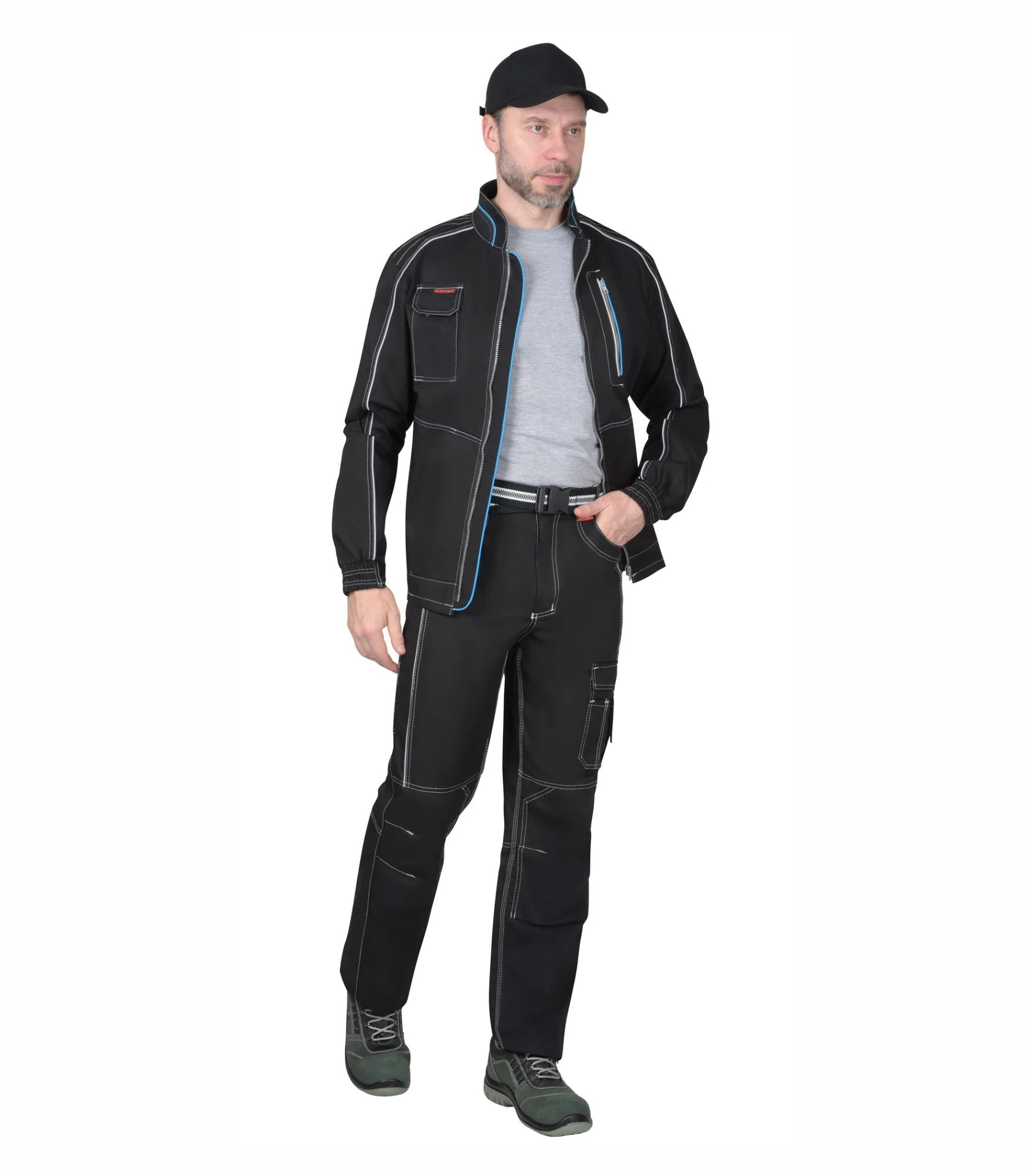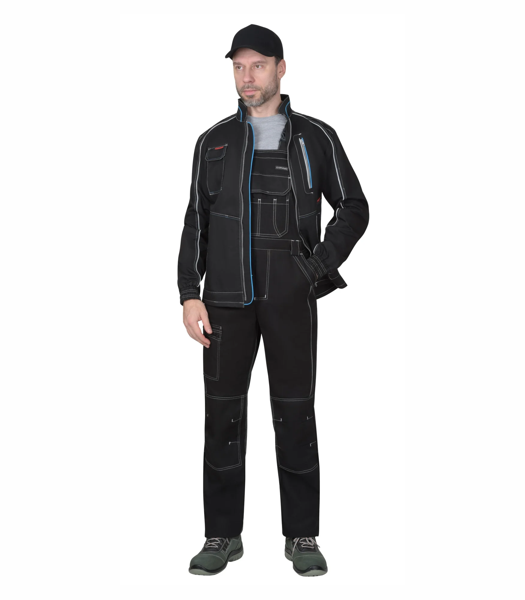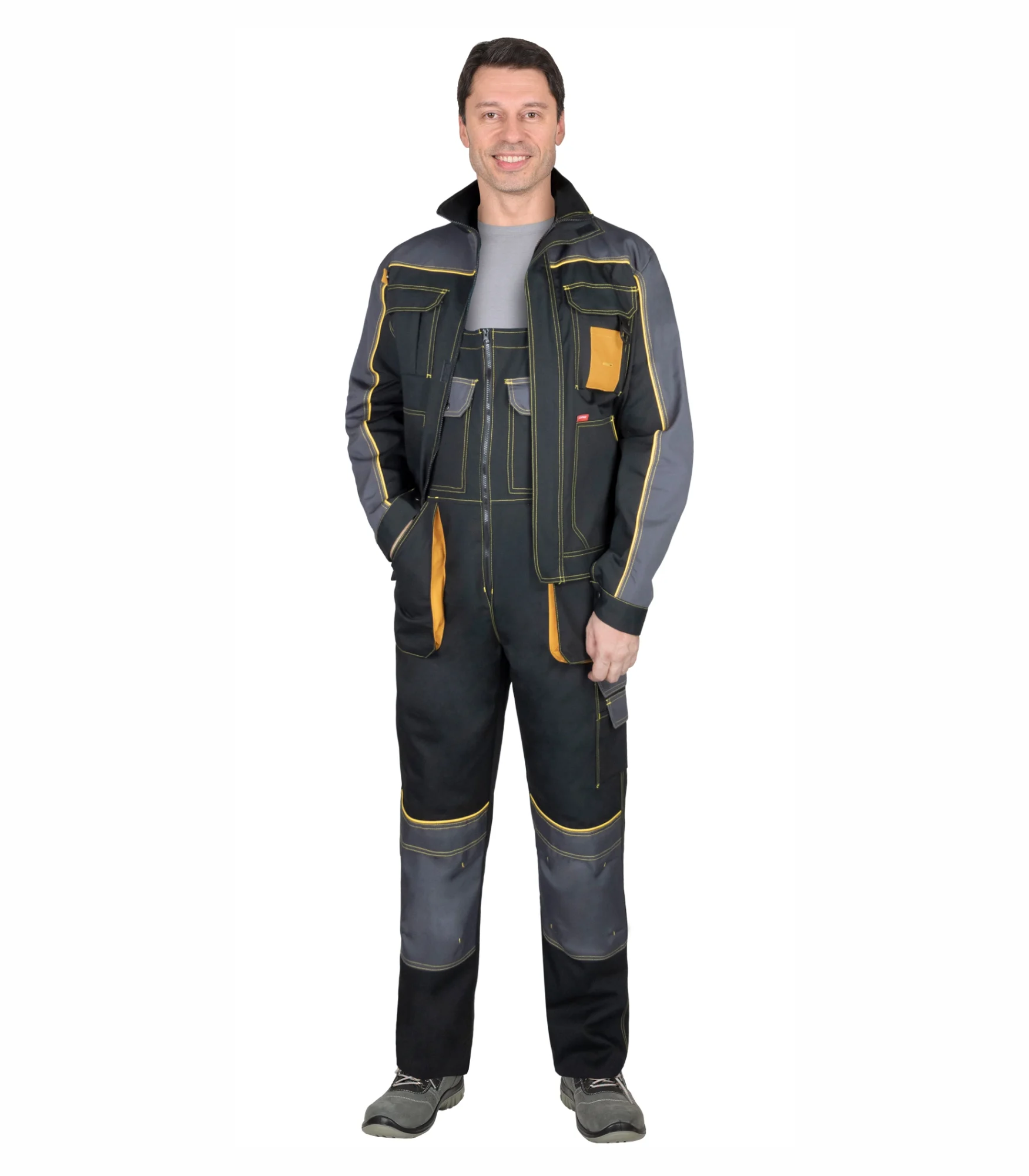 Костюм Агат с п/к, черный/серый