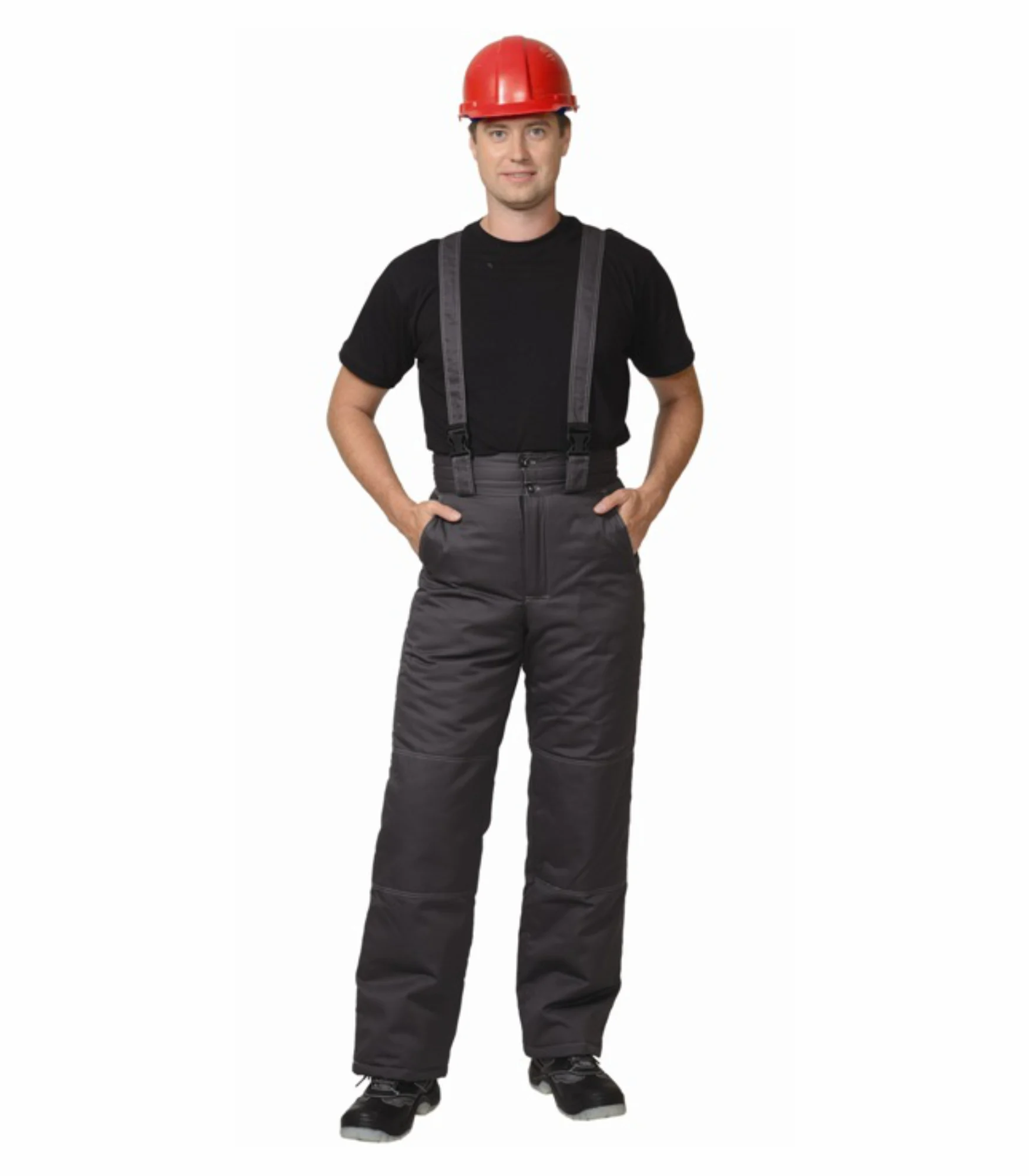 Брюки с широким поясом, застегивающимся на пуговицы; с застежкой гульфика на «молнию», широкими шлевками держателями фастексов, в области колен наколенниками.