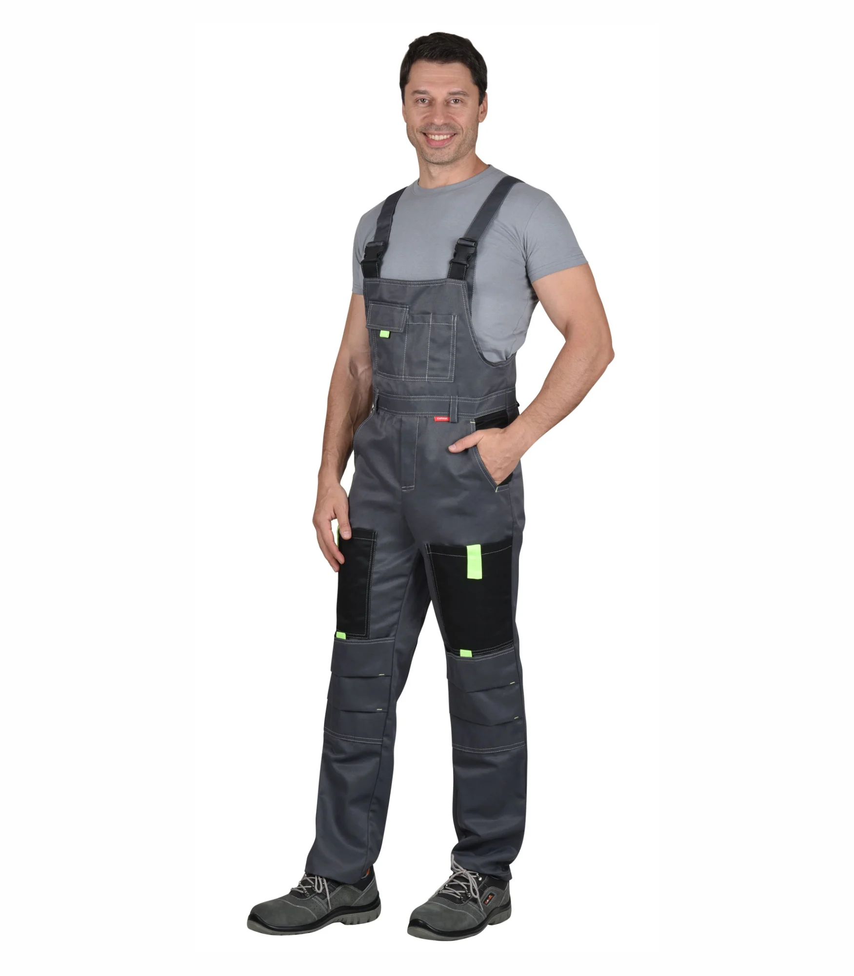 Полукомбинезон, комбинированный с усиленными накладками в области колен, объем по линии талии регулируется тесьмой. Рекомендуется для рабочих специальностей. Современная практичная в эксплуатации и очень экономичная модель летней спецодежды.